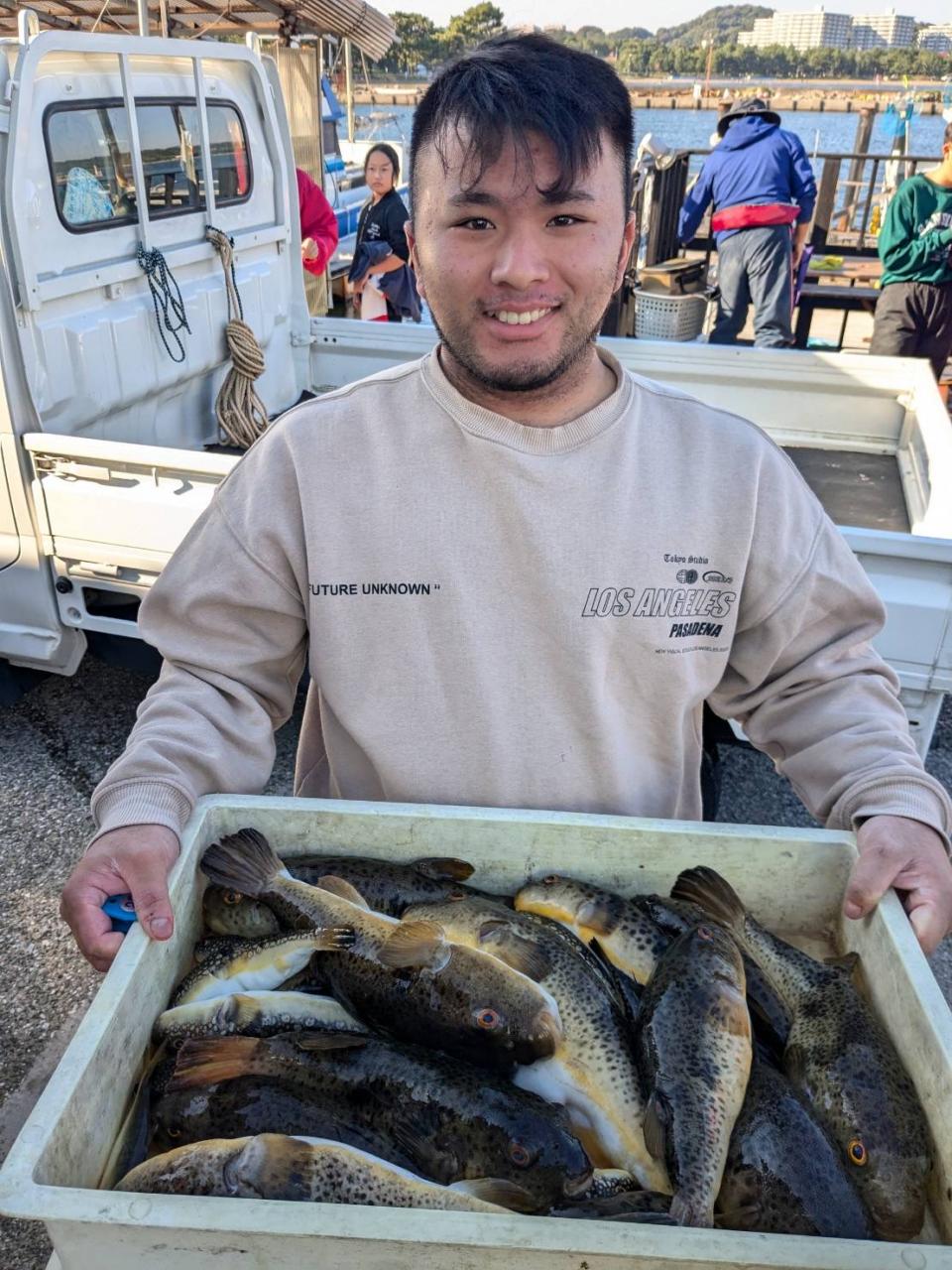 明日の釣り物河豚(空席いっぱい)カワハギ(空席いっぱい)ショート天秤太刀魚(空席いっぱい)午前午後ライト金鯵が出船します、明日も予約無し当時乗船大丈夫です,皆様のご乗船心よりお待ちしています