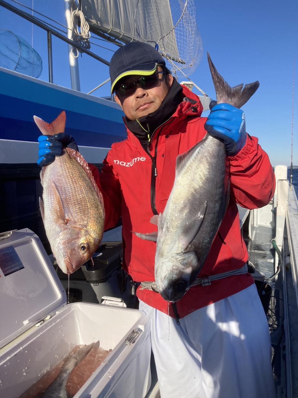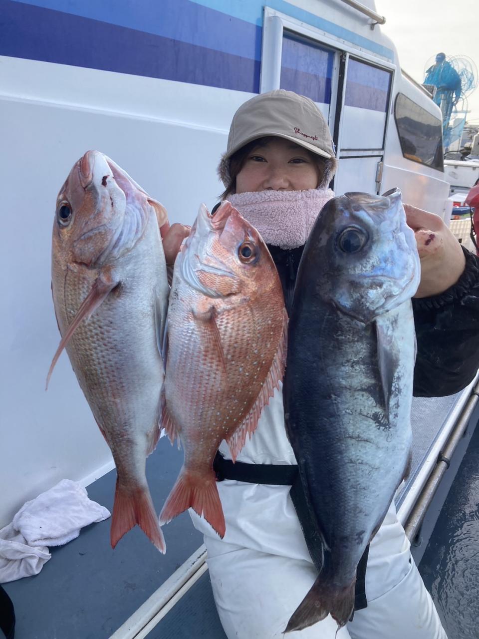 魚種:マダイ(3枚)・メダイ(船中18本)・アジなど